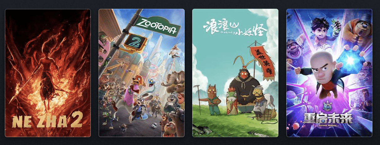 Otra animación para acabar el año, esta vez americana, que también está haciendo historia en China es «Zootopia 2». Esta nueva saga animada ha establecido récord de taquilla para una película extranjera en un solo día y de ingresos totales para una película de animación importada en China. Junto a ellas «Nobody» 浪浪山小妖怪 la animación fantástica con un toque de comedia producida por Shanghai Animation Film Studio y la enésima saga «Boonie Bears: Future Reborn» 熊出没·重启未来 que ya se ha convertido en un clásico animado durante el año nuevo chino.